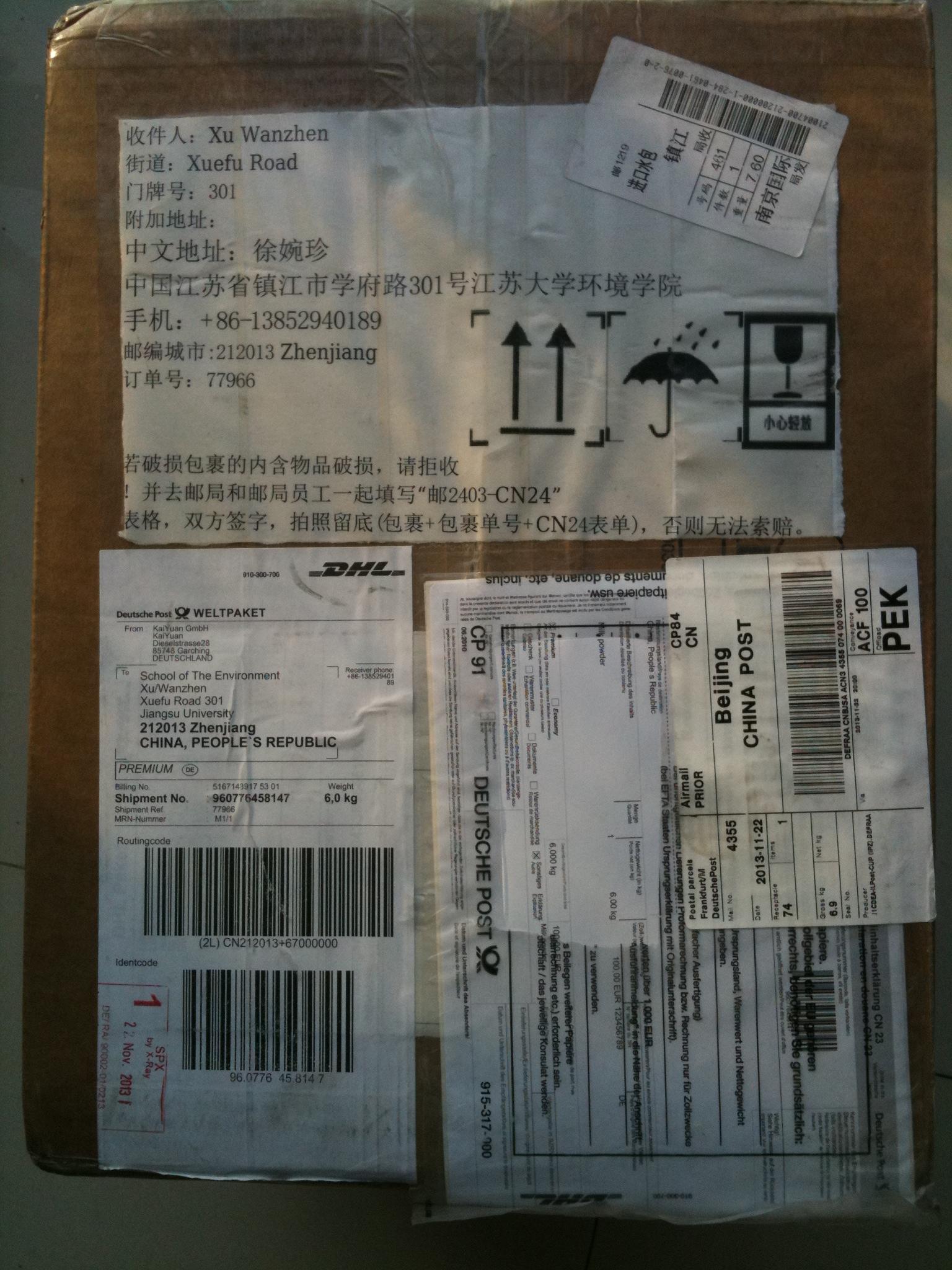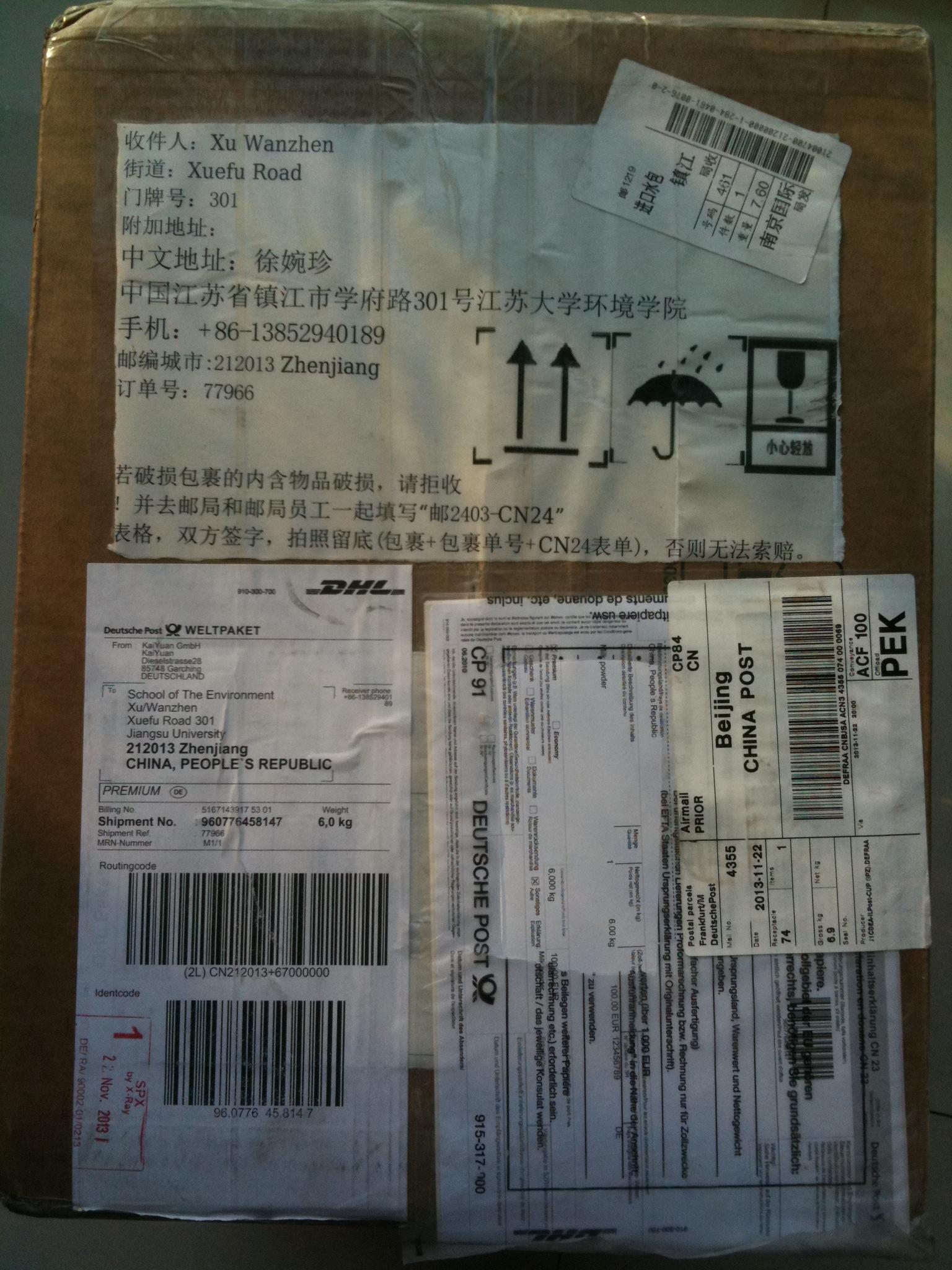 点评时间:2013年12月27日 14:41:29——点评人:Chen** - JIANG**的包裹由 Muenchen 寄往 Zhengzhou 已经送达。