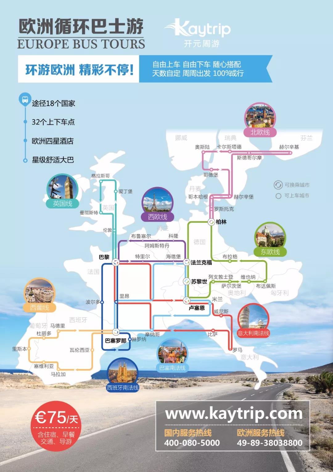 “从2017年各智库提供的数据综合来看,中国赴欧洲的客人超过8成选择了跟团游,这说明我国有庞大的次中产阶层,但是选择一国、两国深度游占比提升到了33%,呈现出追求品质和舒适体验的趋势。开元周游主打的境外参团大巴游,包括北欧线、西欧线、东欧线、意大利南法线、巴塞罗那南法线、西葡线、英国线,每七天一个循环,每一条线和线之间有拼接点,就像中国的地铁。比如您想从法兰克福上团参加遍游西欧循环线,同时还想参加巴塞南法循环线和东欧瑞士循环线,则可以选择【遍游西欧循环线】法兰克福上团,柏林下团;在柏林上团参加【东欧瑞士循环线】,法兰克福下团;在法兰克福上团参加【巴塞南法循环线】,最后在法兰克福下团。按天收费,最短就是一天,曾经有个客户跟我们走了50多天,等于也是自己在拼接定制,很有意思。我们不会像大散拼一样办理ADS签证团进团出,而是办理个人旅游签证,客人到了目的地可以任选我们的团期,还可以脱团再去玩,满足用户个性化需求的同时,对目的地深度游的体验品质也有很大提升。”