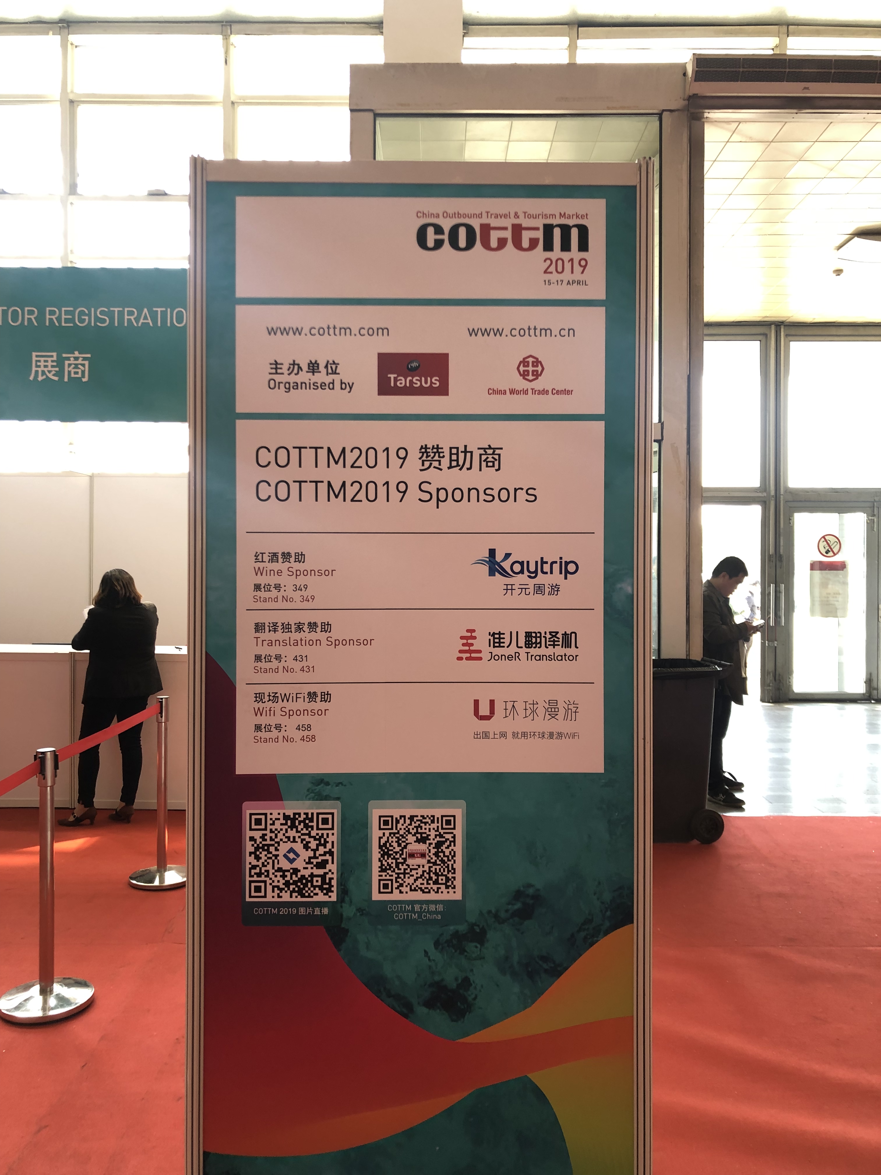 2019年4月15日,第十五届中国出境旅游交易会(COTTM)在北京全国农业展览馆(新馆)盛大开幕。中国出境旅游交易会(COTTM ) 是由英国Tarsus集团公司自2005年在中国创办组织,定位于中国出境旅游市场的B2B专业展览会,汇集了来自全球70个国家,450多家旅游阴影上和资源供应链,吸引了超过5500位业内观众、买家前来参观和采购。