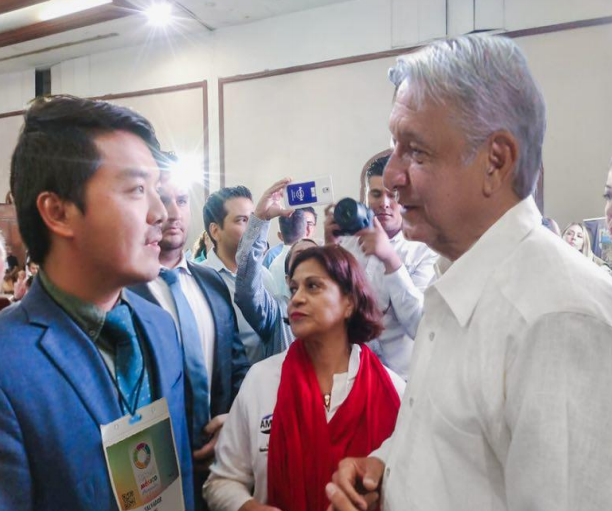 在 4 月 7 日开幕的墨西哥第 44 届国际旅游集市展上,墨西哥现任总统奥夫拉多尔同开元周游墨西哥分公司总经理王雄飞进行简短会谈,共同商讨中墨旅游发展方向。