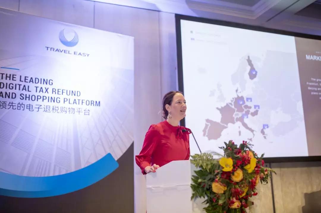 本次活动的联合主办方,TRAVEL EASY易游集团首席客户官Sandra Servos发表了演讲,向在场嘉宾分析了欧洲旅游购物市场最新数据及消费趋势,“中国赴欧游客是高消费潜力族群,移动数字化工具已经深刻嵌入到新一代中国游客的生活中。”接着,Servos女士介绍了TRAVEL EASY易游集团智慧生态圈的构成与以及其服务优势,“作为领先的电子退税购物平台,易游智慧生态圈针对旅游购物行业的四大群体,可以为游客提供更便捷的电子化支付、电子化退税,并确保最少税金损失,为旅游企业精选更多的欧洲购物资源与合作伙伴,并促成合作。为欧洲零售产业提供更有效的营销模式并吸引更多中国游客,为导游领队提供更方便智能的团队管理。”
