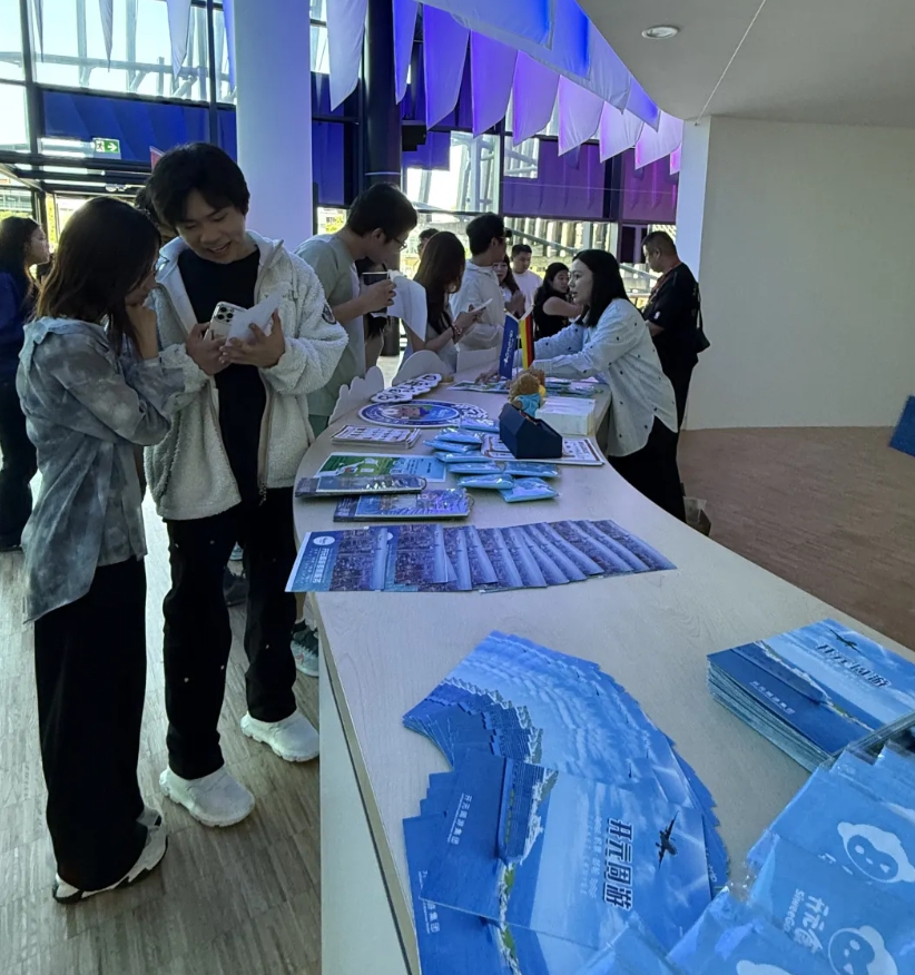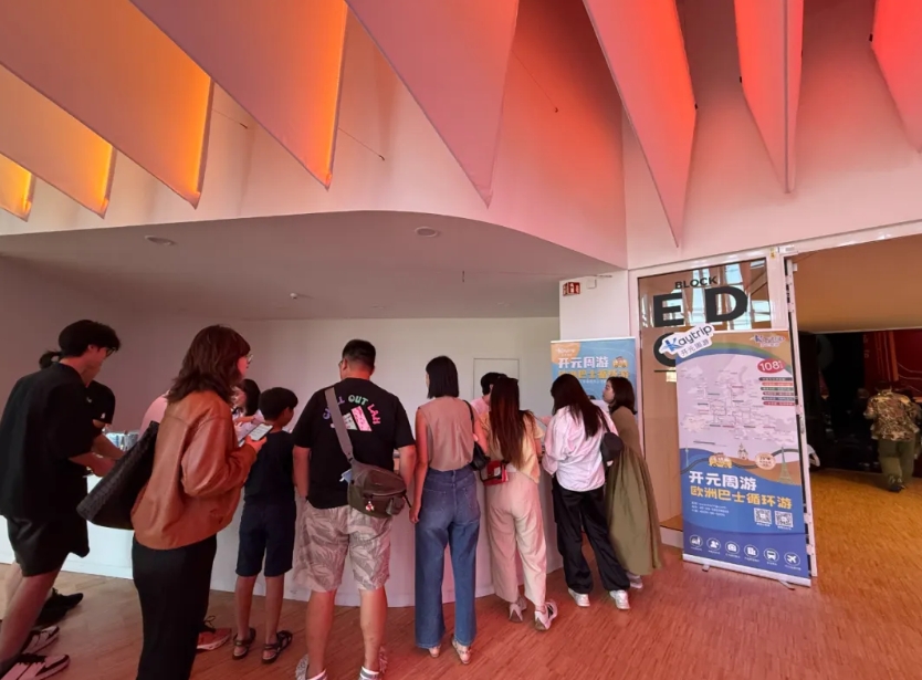 展台前,领取礼品的观众队伍始终川流不息,热情高涨!“开元周游,带你玩遍欧洲!”扫码成功的提示音、获得心仪礼品的满生欢喜,汇成一首活力四射的现场交响曲。短短时间内,为此次活动特制的纸扇,精美实用的帆布袋、欧洲风情卡片包等数百份礼品,被观众如火的热情席卷一空!扫码关注公众号、分享现场盛况至社交媒体的互动环节,引发了观众极大的参与热情,无数手机屏幕亮起,瞬间刷爆朋友圈与小红书。开元周游的品牌温度与“畅游欧洲”的承诺,在演出启幕前已深深烙印在每位参与者心中。