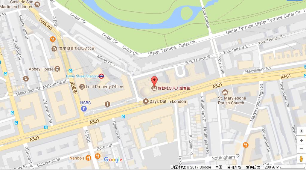 Madame Tussauds, Marylebone Road, London NW1 5LR, United Kingdom; next to Baker St. Tube Station(最近地铁站:Baker Street)