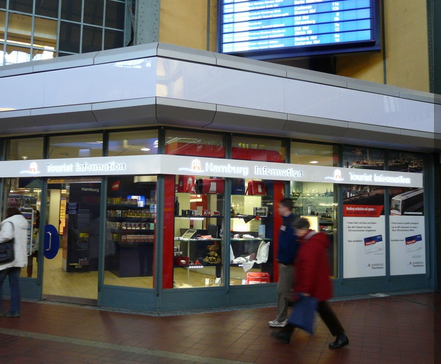 汉堡中央火车站的旅游信息中心,Hamburg Tourist Information in Hamburg Central Station,(Wandelhalle, Kirchenallee exit).