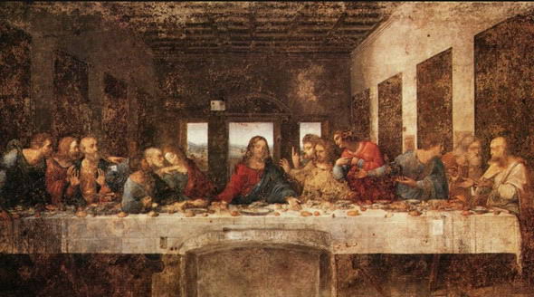 《最後的晚餐》由達·芬奇創作於15世紀,采用了創新的大膽的油畫與蛋彩畫相結合的繪畫技巧,創造了獨特的透視效果,但也很容易遭到侵蝕。幾個世紀後,這幅畫80%的色彩已經消退,修繕工作始於1977年,一直延續了22年。目前對參觀人數有極其嚴格的控制。