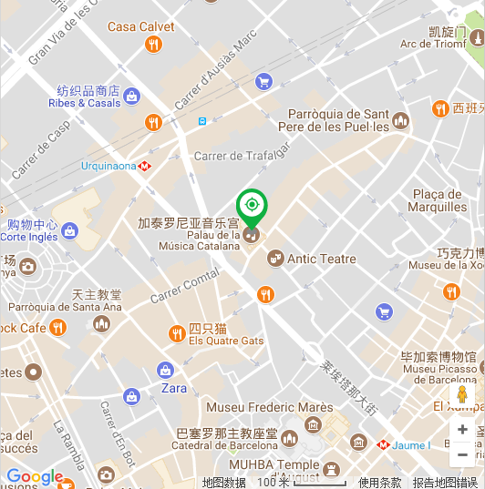 • 加泰罗尼亚音乐厅距离加泰罗尼亚广场与兰布拉斯大道仅 10 分钟步行路程