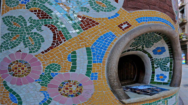 然后您将走到富丽堂皇的楼梯,欣赏为楼梯丰富美感的花朵与旗帜。建筑使用多种不同物料,包括铁和玻璃,当中的细节依然教人称奇。下一站将会来到 Lluís Millet 音乐厅,您会欣赏到一个大楼厅,以及利用各种花朵象征大自然的圆柱。