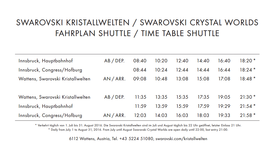 开车:(从因斯布鲁克市中心出发大概20公里)经由 A12, 从 Wattens 出口出,继续按照指示牌前行。可免费停车。