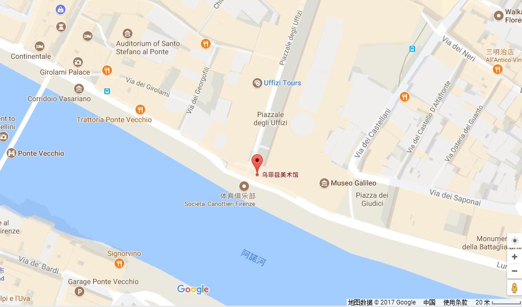 ◆乘坐C3、D路车至Ponte Vecchio站,下车后途经Via dei Georgofili街转Lungarno degli Archibusieri街,步行200米左右即可抵达。