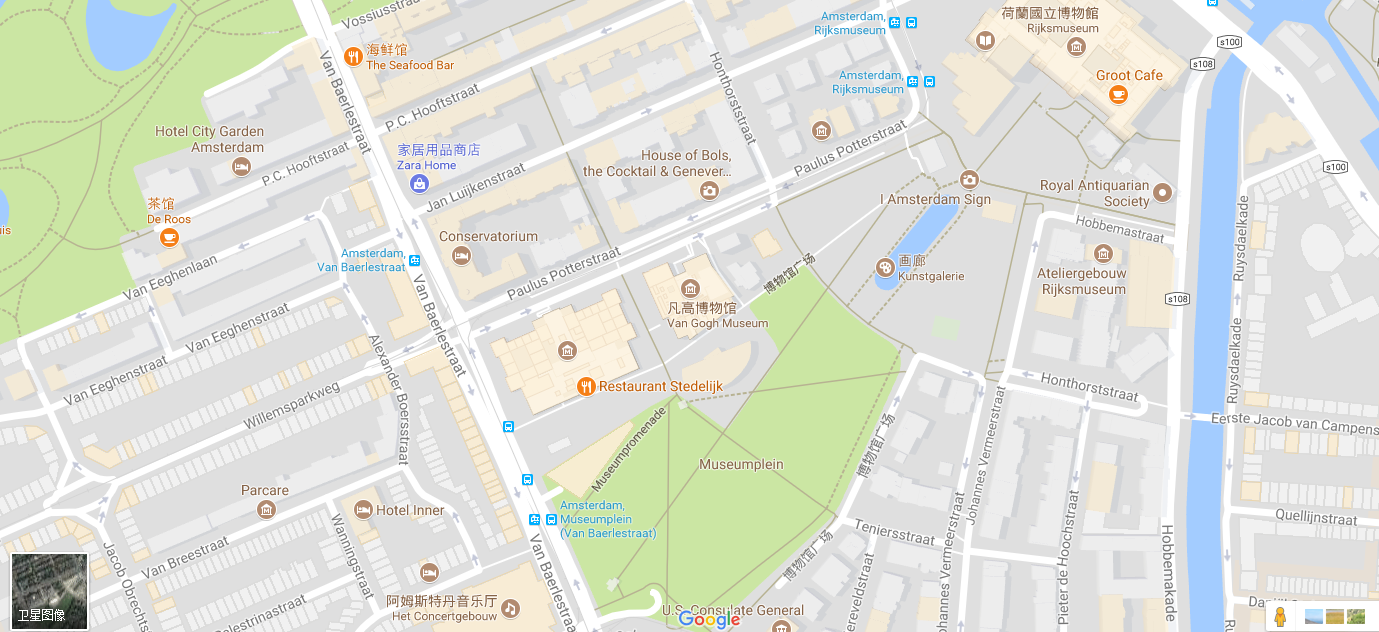 从中央火车站出发,乘坐2、5路电车至Van Baerlestraat站下车;170、172、174路公交至Amsterdam Rijksmuseum站下车。
