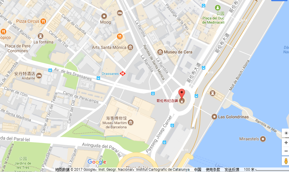步行:沿兰布拉大道(La Rambla)走到尽头;