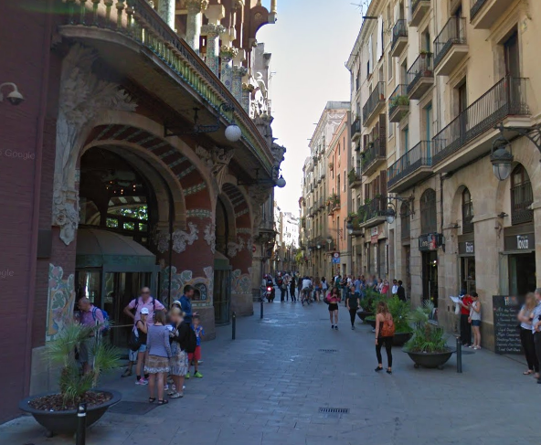 在邻近 Via Lairtana,著名的加泰罗尼亚音乐厅的露天咖啡店的對面出发。办事处的实际地址为 Calle Palau de la Musica, 1, 08011
