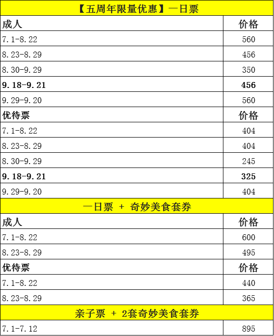 5. 樂園的所有門票(除年卡、季卡外)均為指定日票,遊客只能在購票時所選定的日期當天入園。