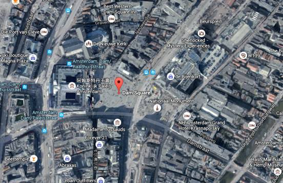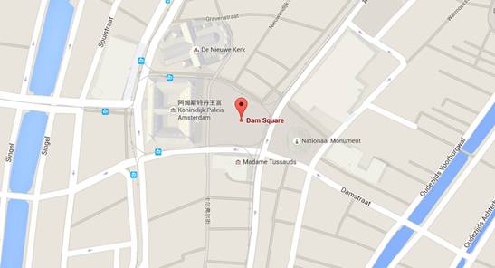 集合地點: Krasnapolsky飯店外大壩廣場(白色紀念碑和正門飯店之間)Dam Square, Amsterdam
