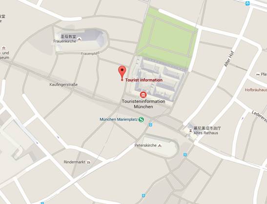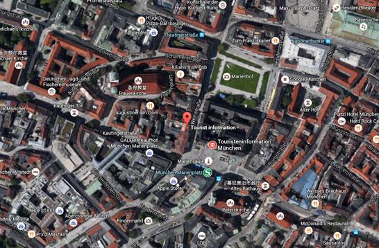 Marienplatz, under the Glockenspiel, next to the Tourist Information Center