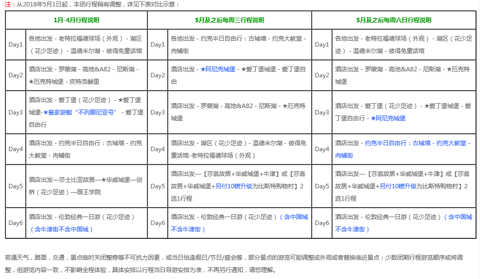 为避免官网线路信息未及时更新,请报名英国线路以后,务必和客服核实下订单成功,且确认出团,再付款、安排交通,以免造成的不必要损失。