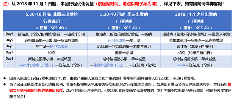 为避免官网线路信息未及时更新,请报名英国线路以后,务必和客服核实下订单成功,且确认出团,再付款、安排交通,以免造成的不必要损失。