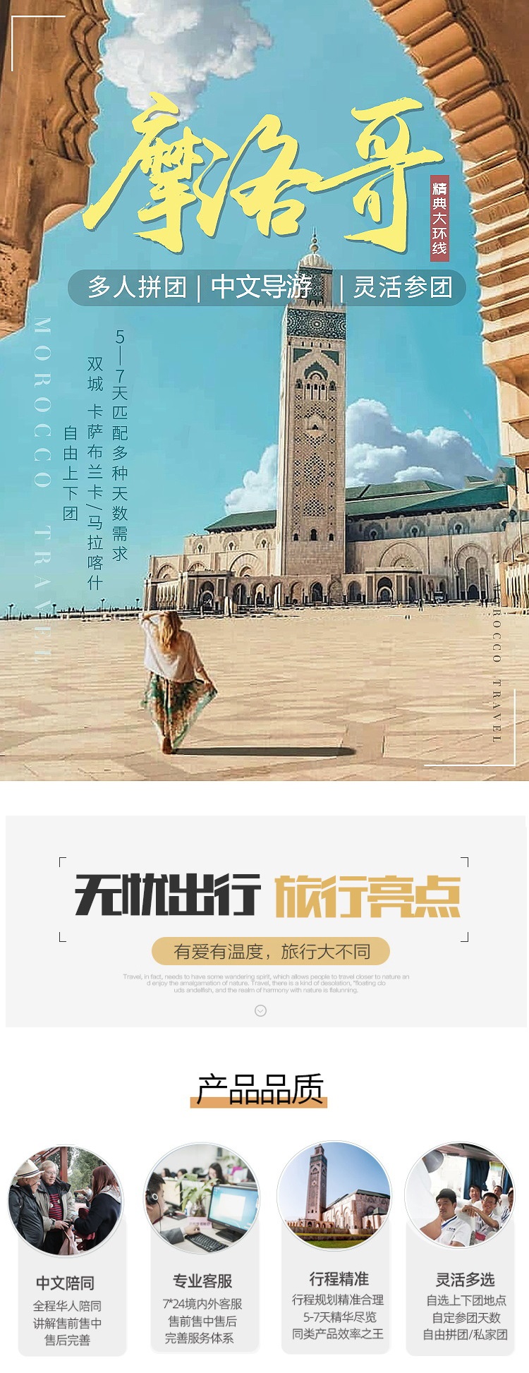 【摩洛哥循环线】每周二/六卡萨布兰卡/马拉喀什发团,4人成团中文导游