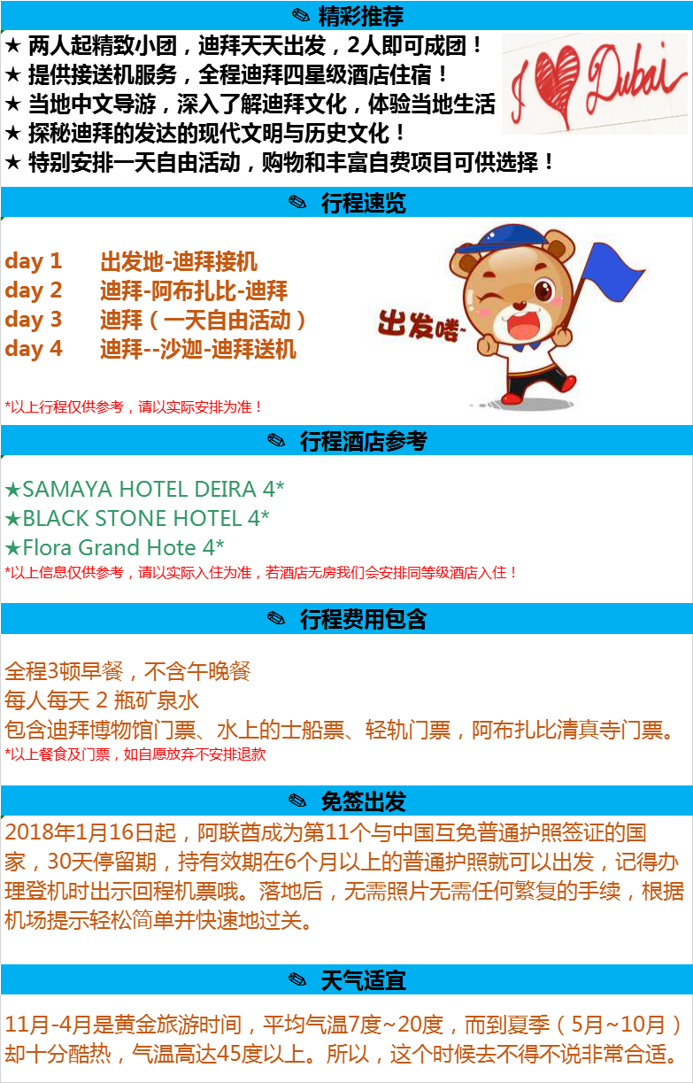路线名称:【免签】迪拜4天3晚经典行程(当地四星级) ; [ 中东非旅游, ]