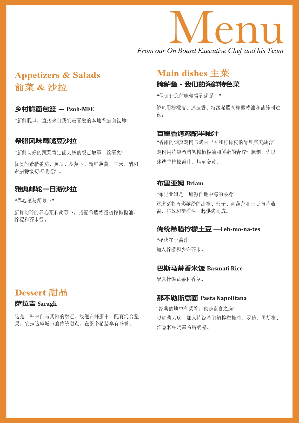注意:当天食材根据船上厨房而定,请以实际情况为准~