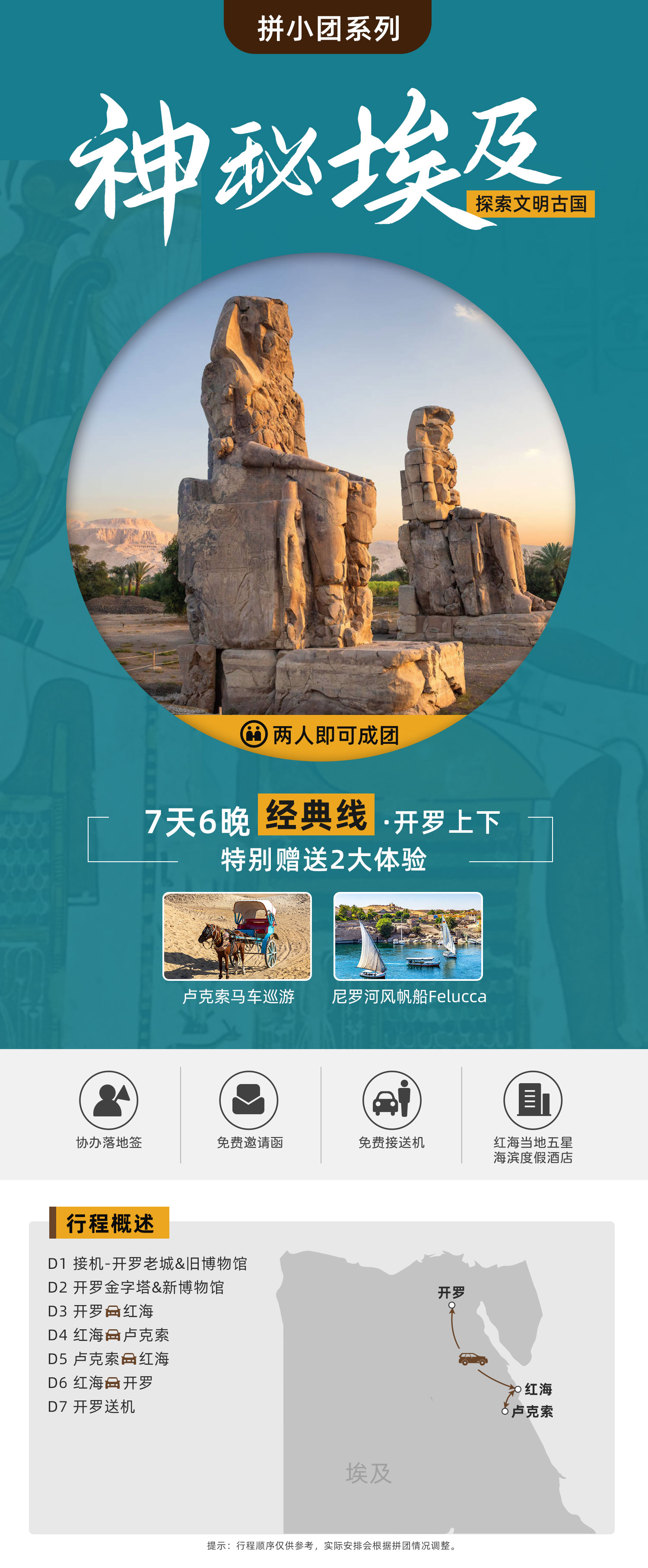 |>>2-12人拼小团<<| ♥ 特别赠送两大体验:马车巡游+风帆船Felucca ☥【经典线】两人成团•协办落地签•免费邀请函•免费接送机•红海五星海滨度假酒店