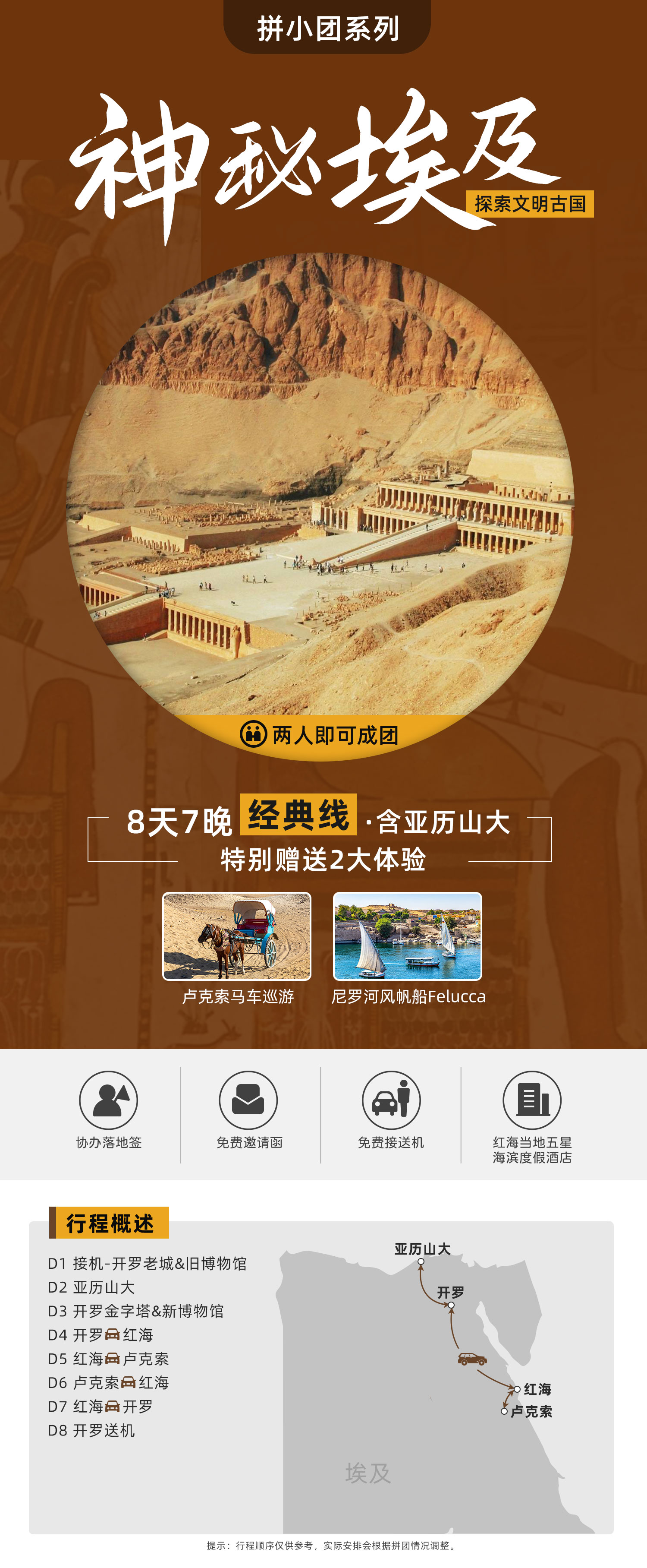 |>>2-12人拼小团<<| ♥ 特别赠送两大体验:马车巡游+风帆船Felucca ☥【经典线】两人成团•协办落地签•免费邀请函•免费接送机•红海五星海滨度假酒店