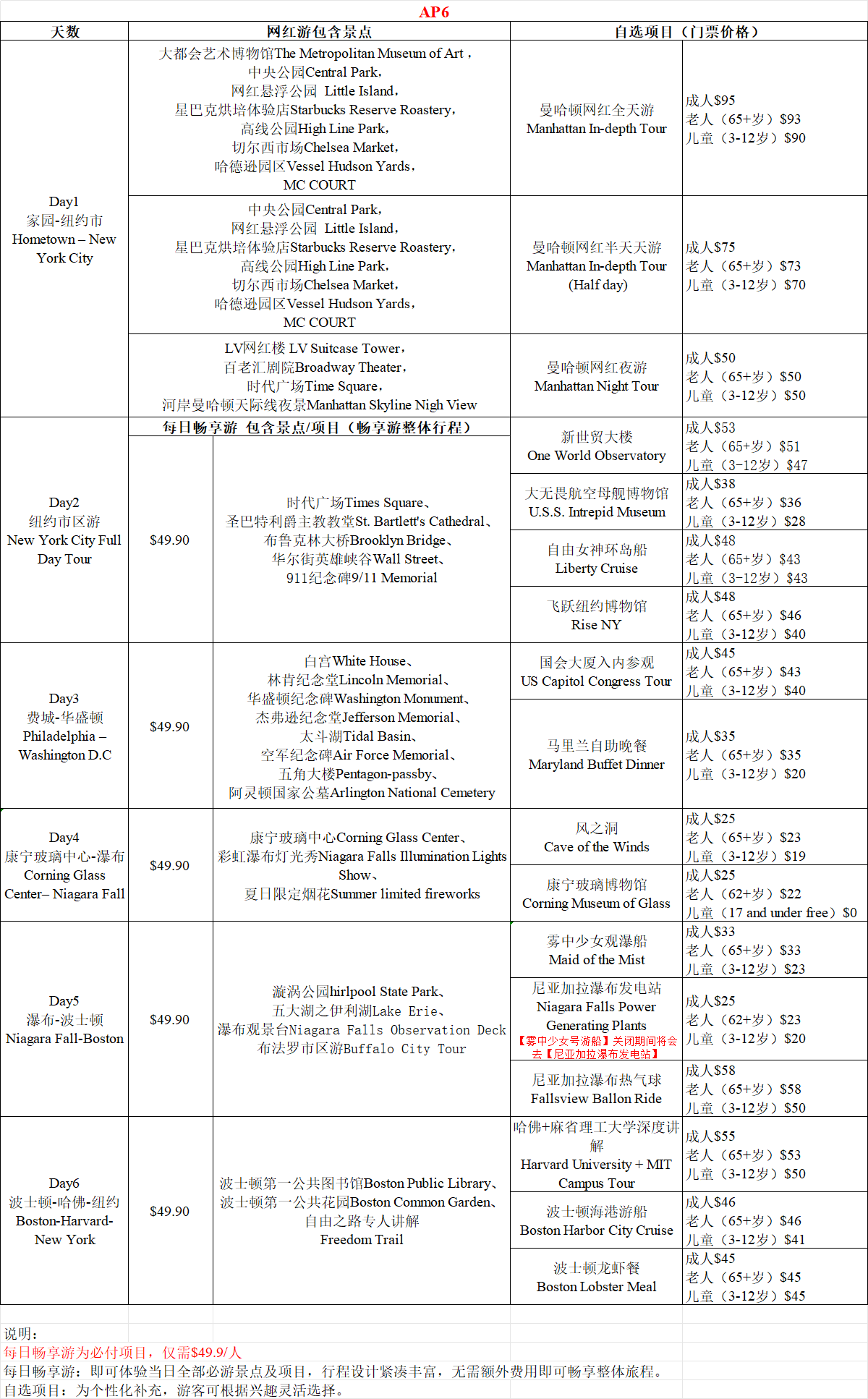【*曼哈頓網紅全天遊】:賣價:大人/老人/小孩 95/93/90 美金/人