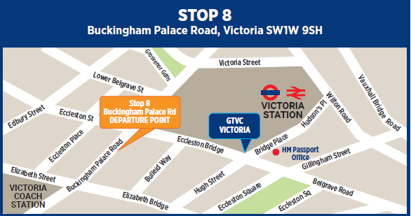 D1 伦敦维多利亚Stop8(Victoria Stop8) 上团时间: 07:30 出发时间:08:00 上团地点: Stop 8, Buckingham Palace Rd, London, SW1W 9SZ, United Kingdom