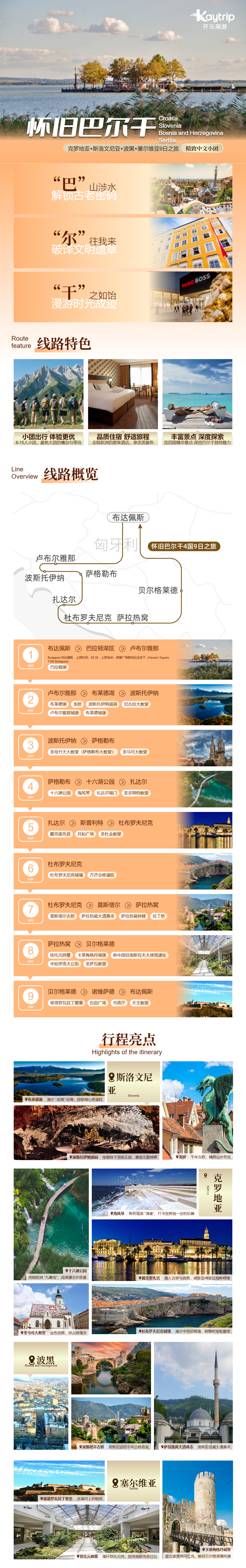 行程索要:布达佩斯-巴拉顿湖区-卢布尔雅那-布莱德湖-波斯托伊纳-萨格勒布-十六湖公园-扎达尔-斯普利特-杜布罗夫尼克-莫斯塔尔-萨拉热窝-贝尔格莱德-诺维萨德-布达佩斯