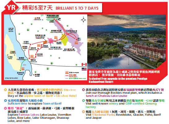 行程索要:温哥华-卑斯渡轮-维多利亚-内港-布查特花园-温哥华-基洛纳-欧垦娜根湖-酒庄-鲑鱼湾-班夫国家公园-登山缆车-弓河瀑布-班夫风情小镇-露易丝湖-冰原景观大道-贾斯珀国家公园-冰原-冰川天空步道-黄金镇-甘露市-参场-菲沙河谷-温哥华