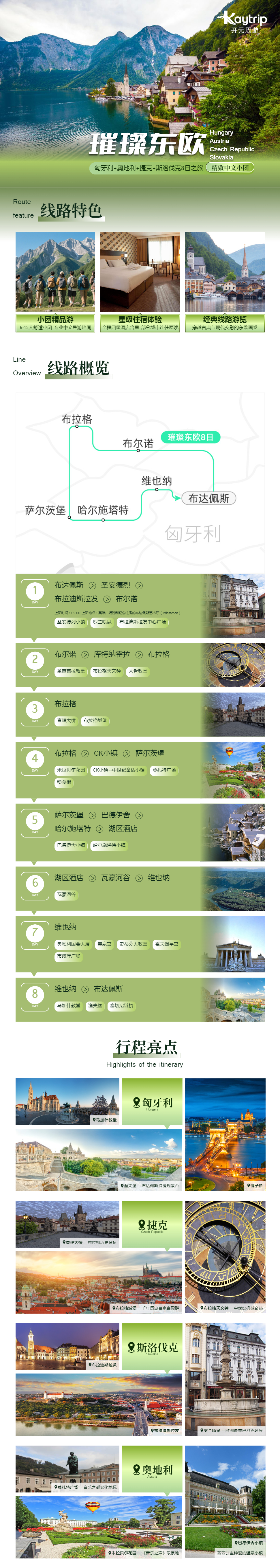 行程索要:布达佩斯-圣安德烈-布拉迪斯拉发-布尔诺-库特纳霍拉-布拉格-CK小镇-萨尔茨堡-巴德伊舍-哈尔施塔特-湖区酒店-瓦豪河谷-维也纳-布达佩斯