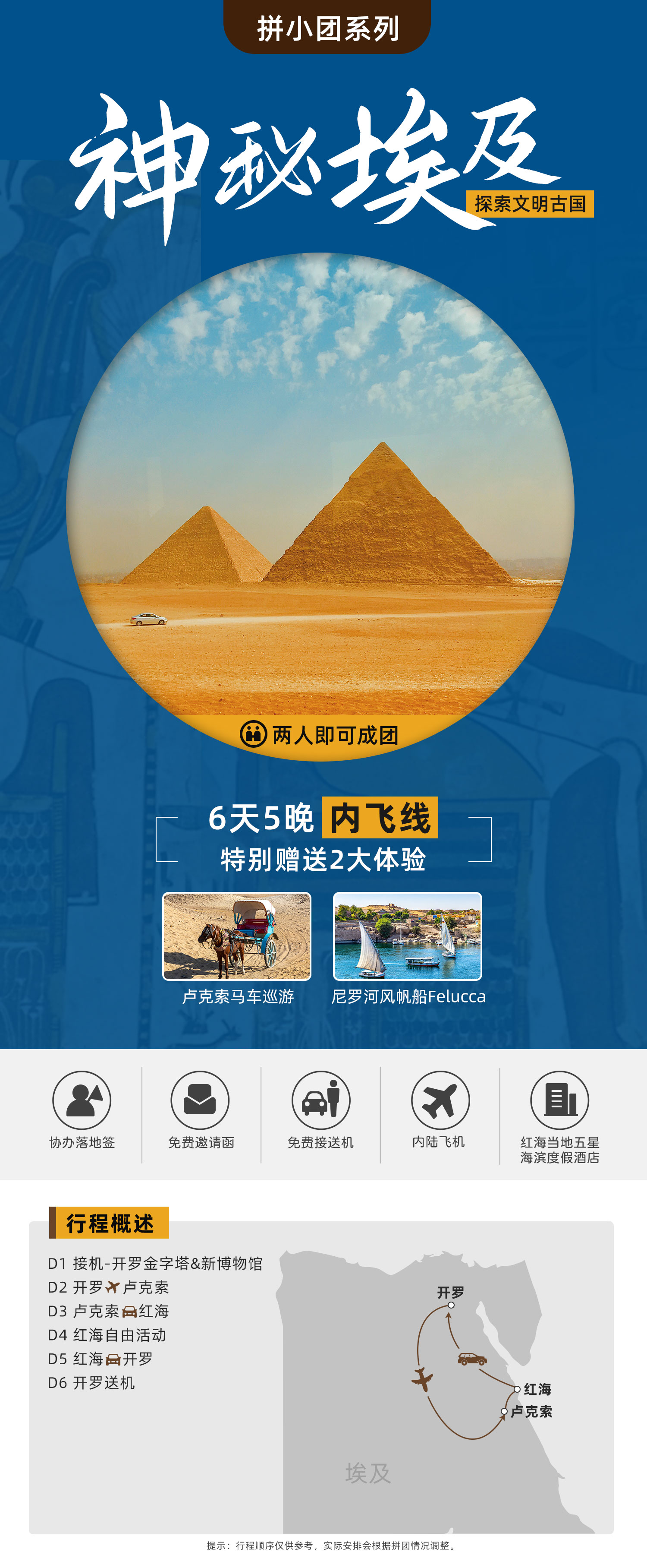 <拼小团>【内飞线】埃及开罗+红海+卢克索6日游(落地签) [编号:4100] 预订需二次确认