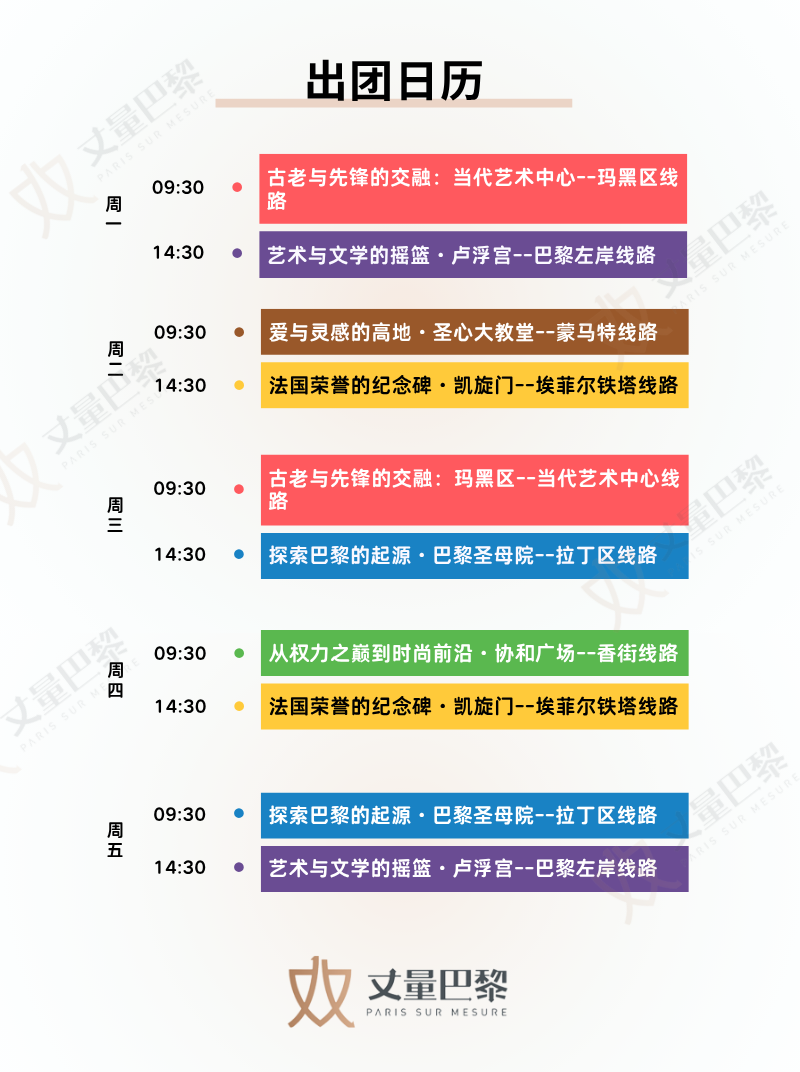 D1 巴黎(Paris) 上团时间: 09:30 上团地点: 地铁2号线 Anvers站