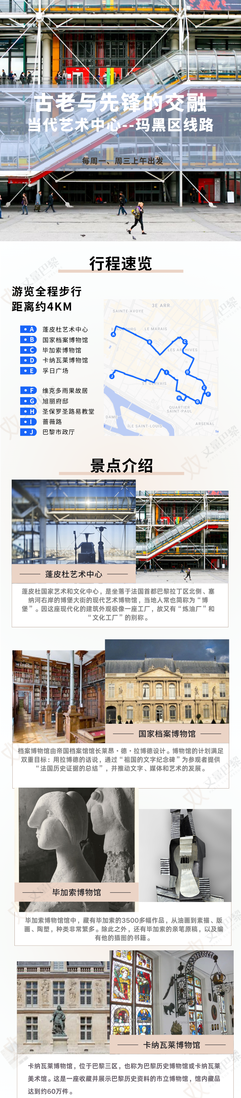 路线名称:【丈量巴黎 F线】古老与先锋的交融•当代艺术中心--玛黑区线路(周一 /三上午 2.5小时) ; [ 欧洲旅游, 一日游 ]