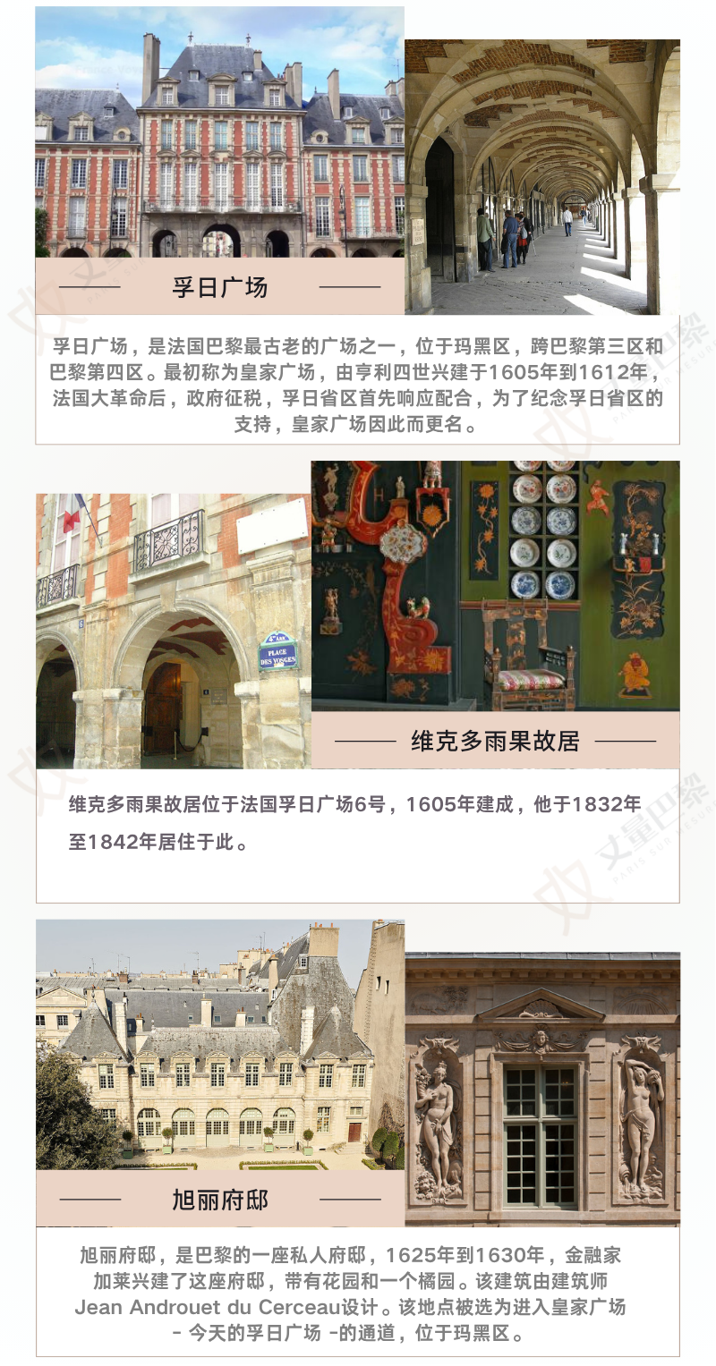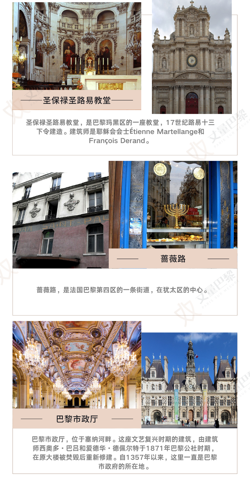 蓬皮杜艺术中心 国家档案博物馆 毕加索美术馆 卡纳瓦莱博物馆 孚日广场 维克多雨果故居 旭丽府邸 圣保禄圣路易教堂 蔷薇路 巴黎市政厅
