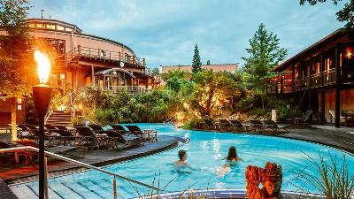 位於巴特恩豪森的巴里島溫泉將遠東風情與現代健康養生文化完美融合。棕櫚樹、溫暖的木質色調、精美的裝飾細節以及令人心曠神怡的聲響,共同營造出一種氛圍,讓你從踏入的那一刻起便仿佛置身度假勝地。溫泉中心的核心是一處寬敞的水景區,內設室內外泳池、按摩浴缸、瀑布以及舒適的休憩角落。泳池中注滿了經國家認證的溫泉水,既適合悠闲地漂浮放松,也適合積極地暢遊。