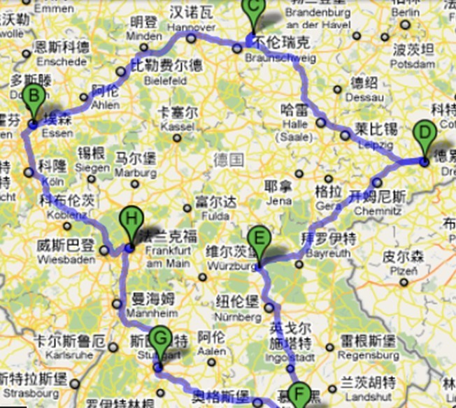 共4个上下车地点 中国--法兰克福,法兰克福--中国