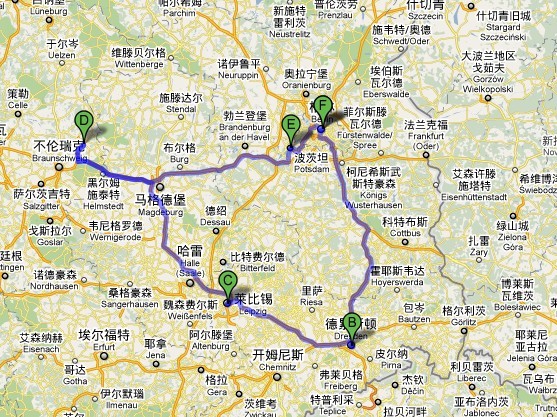 共4个上下车地点 北京/上海——柏林,柏林——北京/上海
