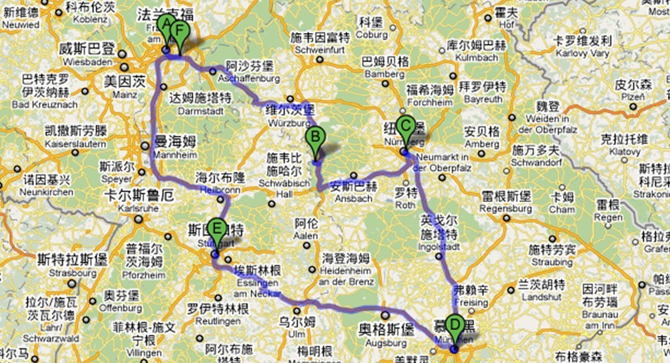 共6个上下车地点 厦门/上海/北京——法兰克福,法兰克福——厦门/上海/北京