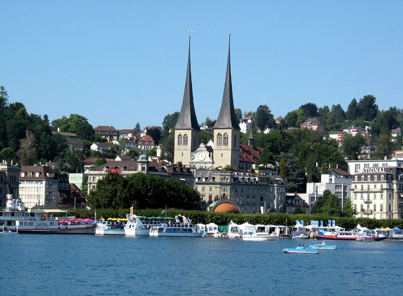 瑞士中部高原的卢塞恩(Luzern)是个湖光山色相互映衬的美丽城市,瑞士最大的夏季避暑胜地之一,中世纪的教堂、塔楼,文艺复兴时期的宫厅、邸宅以及百年老店、长街古巷,比比皆是。卢塞恩湖将市镇隔为南北两区,湖光水色映照城中美景,悠游其间,疑真疑幻。