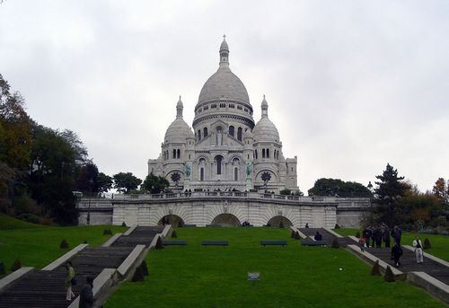 圣 心堂(Sacre-Coeur) 圣心院是更接近市民的宗都设置,在它的脚下,各式各样的杂货店店铺林立,空气中弥漫着煎饼和 烤栗子的香味。这是远离尘 杂最近的一片神的净土。秉承法国式的东方精神,这座立于山丘之上的天主 教堂被建成了印度佛教的式样,通体洁白 ,优雅无双。
