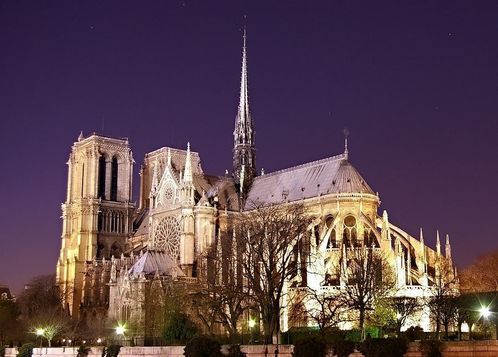 巴 黎圣母院(Notre Dame)巴黎圣母院不仅因雨果的同名小说而出名,更因为它是巴黎最古老最宏伟的天主教堂。这座哥特式的巨石建筑物,历经两百年, 建成于1345年。教堂形体方正, 仪态庄严。正面朝西分三层,高69米,底层并排三座桃形大门洞,左为圣母门,右为圣安娜门,中为最后的审判。门上布满 了雕饰,描述圣经的故事。门卷上是长 条壁龛,一字排着28座雕像。