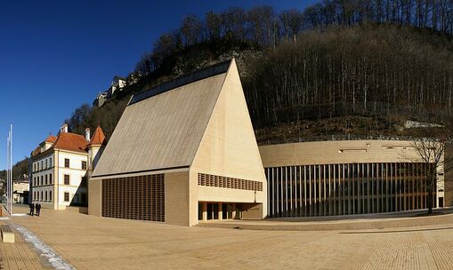 列支敦士登公国国家议会大厦,2000年由Hansjoerg Goeritz建筑工作室在一次欧洲项目的国际竞赛中获得头奖,经过7年的规划与执行,于2008年顺利竣工。今天,建筑外部和内部空间展示的不仅仅是他的三权分立民主特色,而且还有莱茵河流域阿尔卑斯山脉的文化特色。此外,他们还支持有意识的将城市建筑体系相互联系起来,城市原先的整体规划也得以被重新诠释。 三层高的白色楼房是Regierungsgebaude(国会大厦,也称公