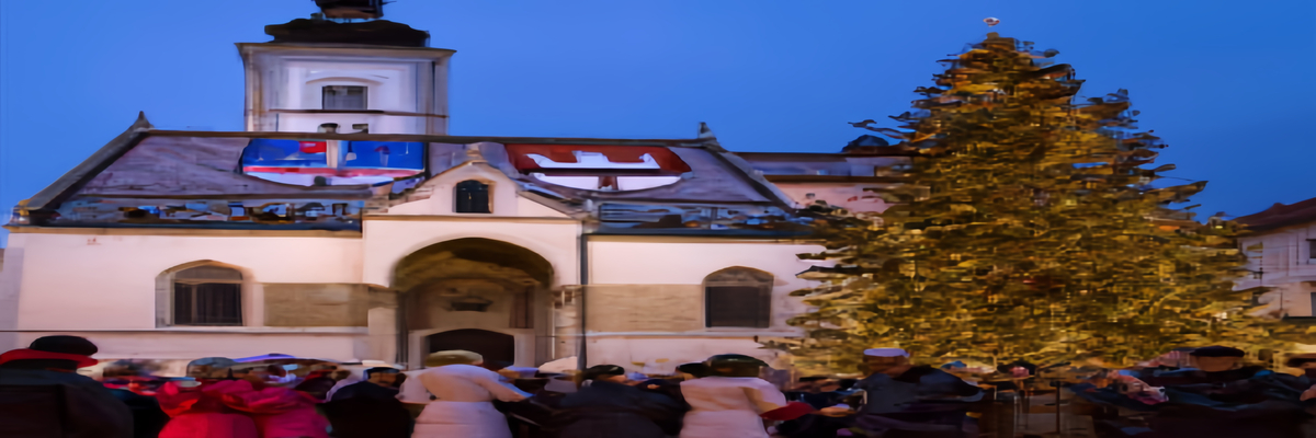 斯洛文尼亚的卢比安娜老城教堂广场从每年的12月1日那天开始一直到圣诞节结束,这个广场上面都会竖起一颗高大的圣诞节。随着冬季的到来,这里的天黑的特别的早,走在广场上欣赏广场灯饰如火树银花。这里点燃了节日的温馨,而且在广场跟河边就会摆开圣诞市集。