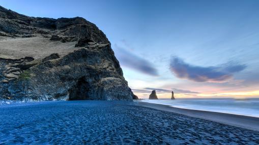 黑沙滩,位于冰岛,是一个由火山石形成的沙滩。