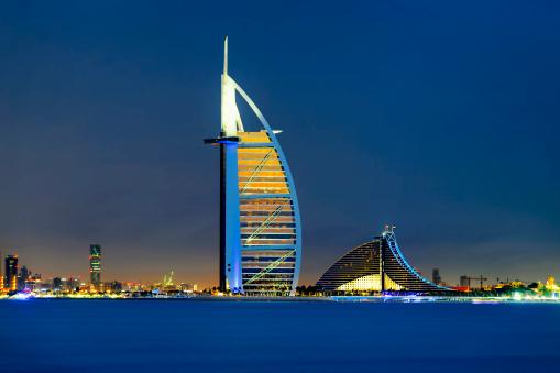 经过全世界上百名设计师的奇思妙想,以及无数的金钱,缔造出的七星酒店帆船酒店,在大海的衬托下,构成了眼前这幅美好的画面。