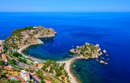 陶尔米纳,一边是广阔、蓝色的伊奥尼亚海的海上风光,另一边是埃特纳火山的壮丽山景,这让它迷人有独特。