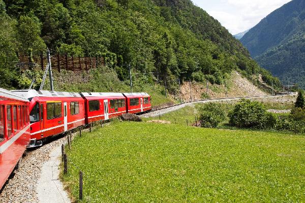 布鲁西奥环形高架桥:列车驶出蒂拉诺不久,便会经过工程奇迹——布鲁西奥螺旋高架桥。红色的列车在巨大的石制环形桥上缓缓绕行360度,以极优雅的方式克服巨大的海拔落差,是整条线路最标志性的画面。