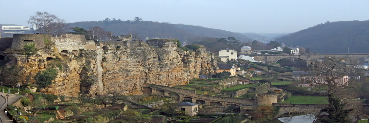 这座城堡的建造日期最早可以追溯的罗马时代,是从一个木制的堡垒扩建为石质的城堡的。1972年被卢森堡政府购置和修缮。卢森堡古堡,是卢森堡最有历史沉淀的遗迹,是卢森堡城防体系的遗留。