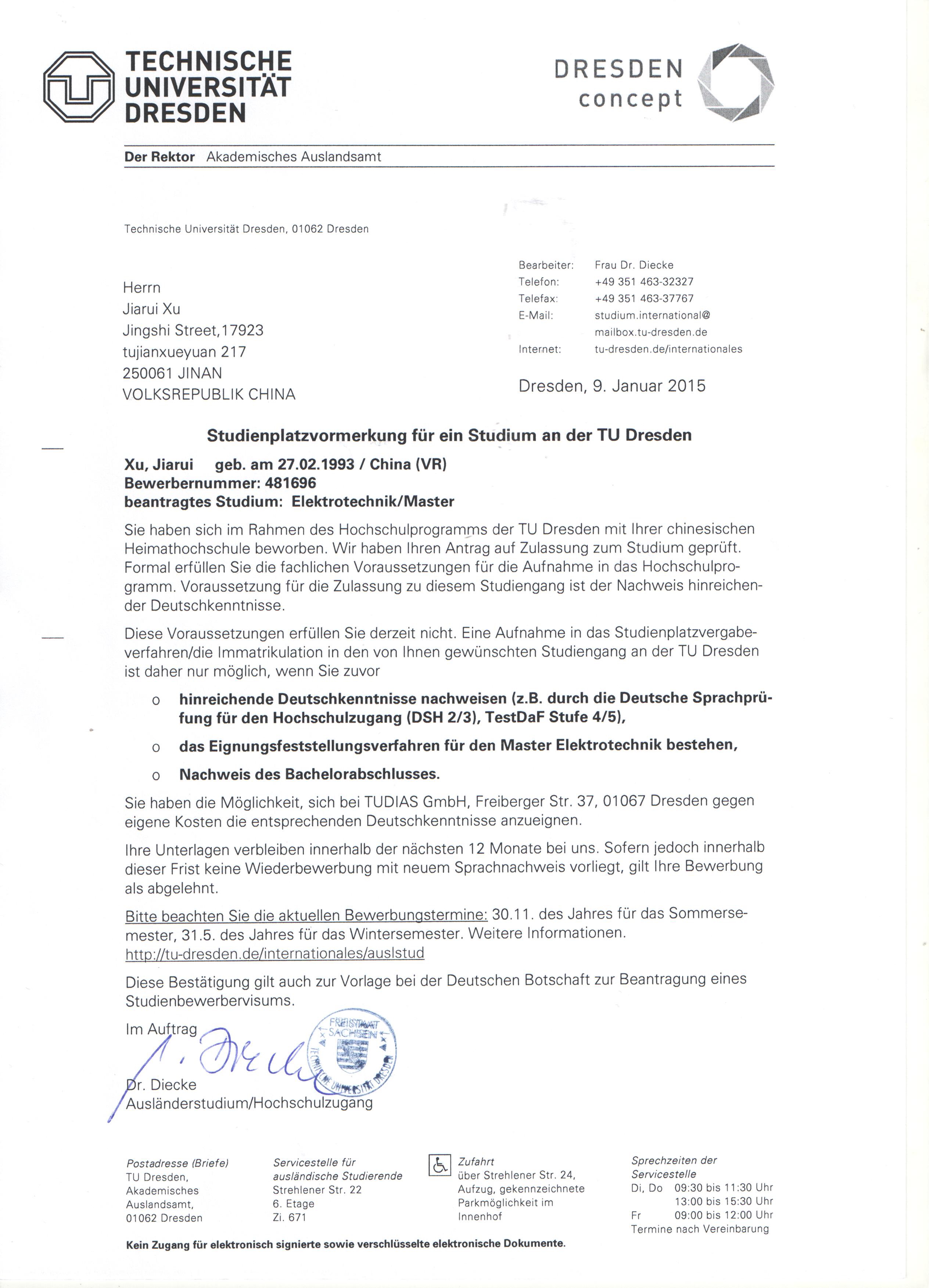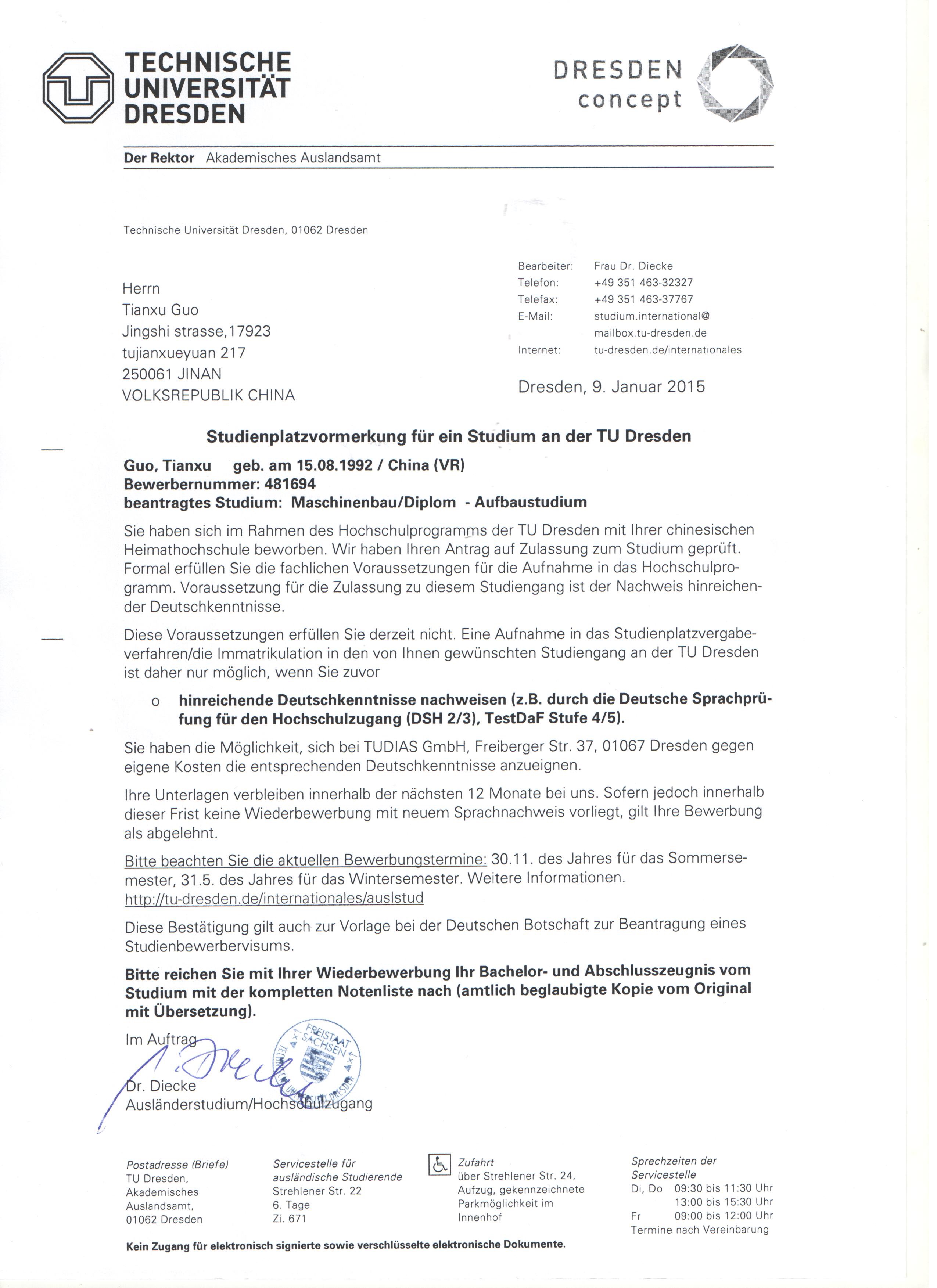 德累斯顿工业大学注重外国留学生的学习和生活辅导。外国留学生管 理处负责老师经验丰富,从1999年开始同中国合作以来,由德累斯顿 工业大学下属语言学校TUDIAS(chinese.tudias.de)亲自长期不懈的努 力,已经使该校成为中国学生德国留学中的首选大学。
